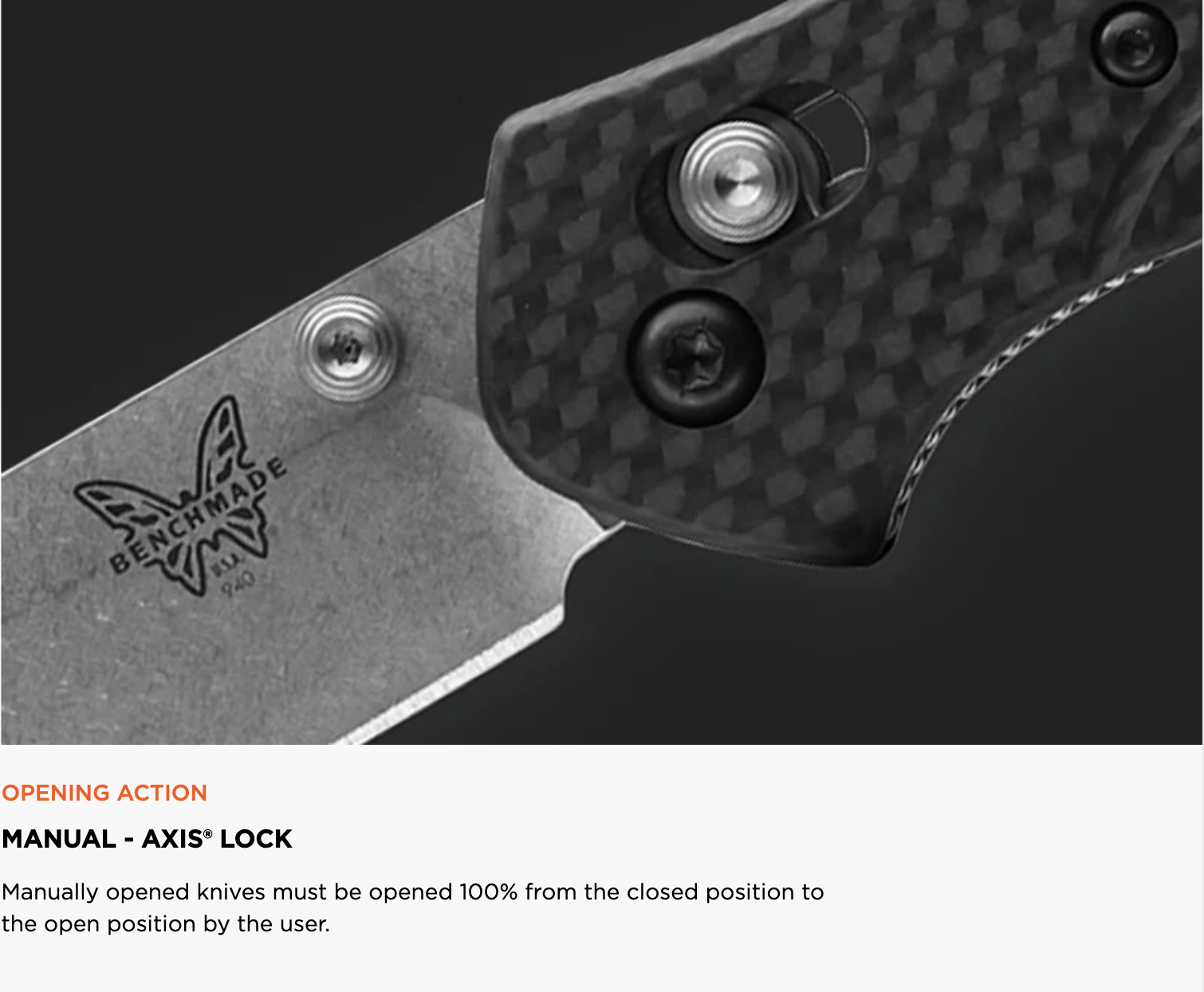 • Use as Intended: Benchmade knives are precision cutting tools. Do not use your knife as a pry-bar, screwdriver, chisel, or punch—unless specifically designed for those functions.