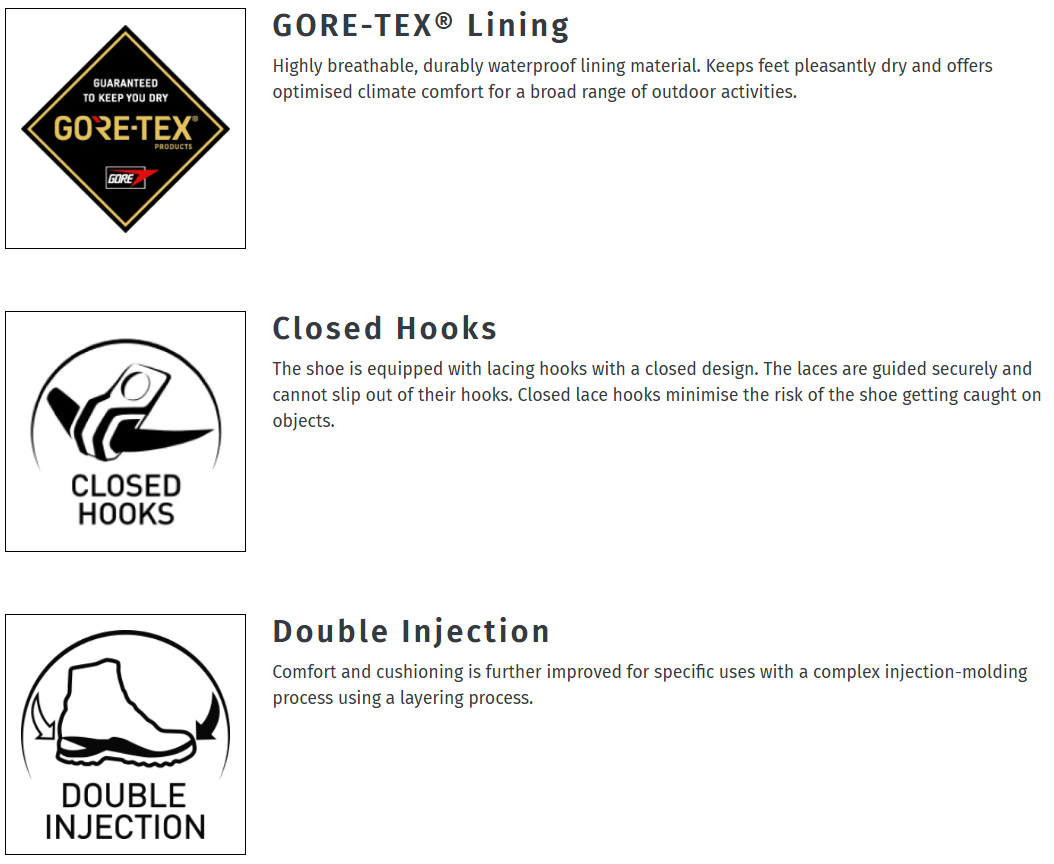 Upper height/design measurement according to DIN EN ISO 20347:2012: 140mm / Design B