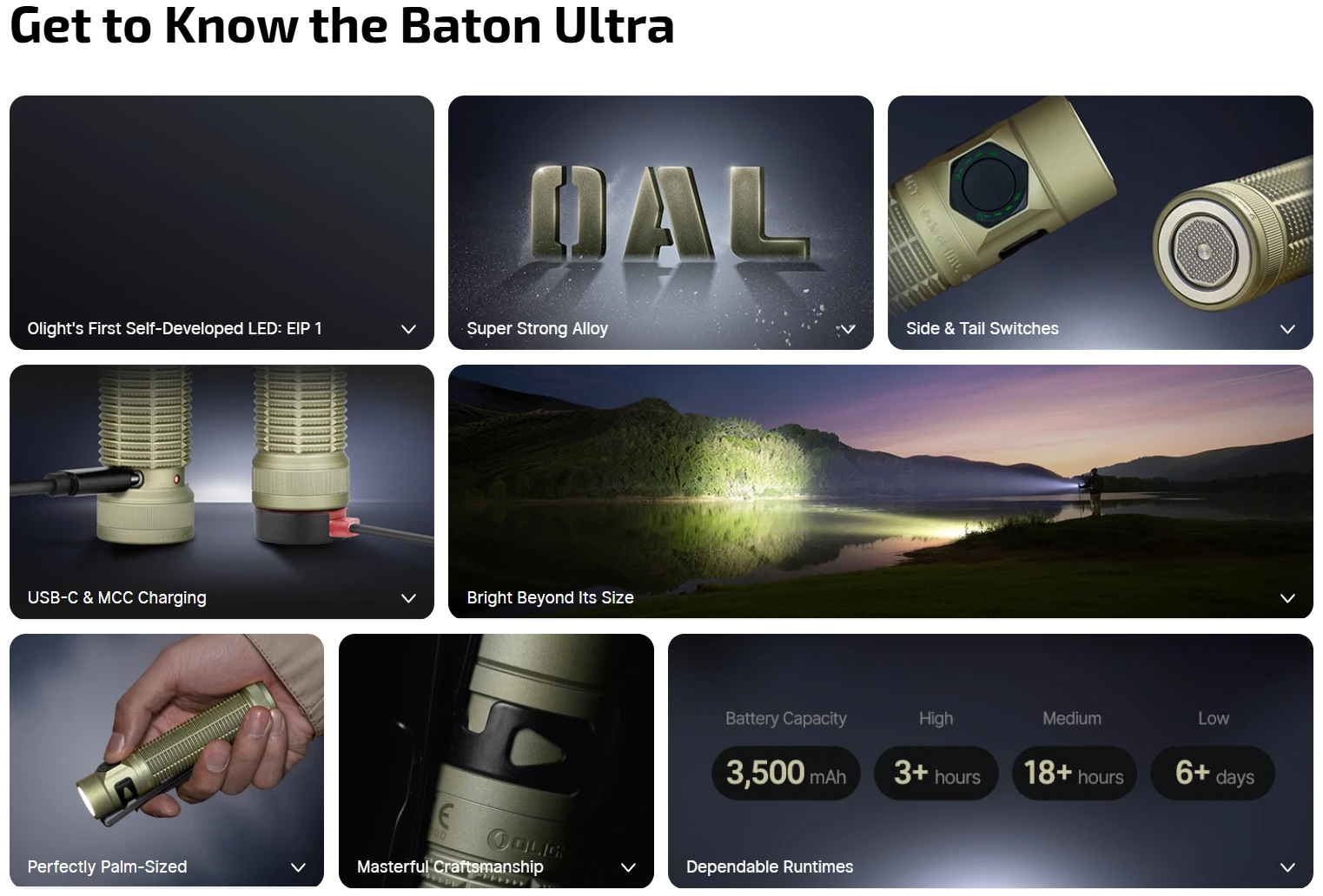 - Bright Beyond Its Size: These all-new compact cylindrical lights deliver an exceptional balance of portability, runtime, and power. The Baton 4 Pro's intermediate beam pattern is suitable for work and everyday tasks, while the Baton Ultra'shigher beam intensity makes it ideal for longer-range outdoor use.
