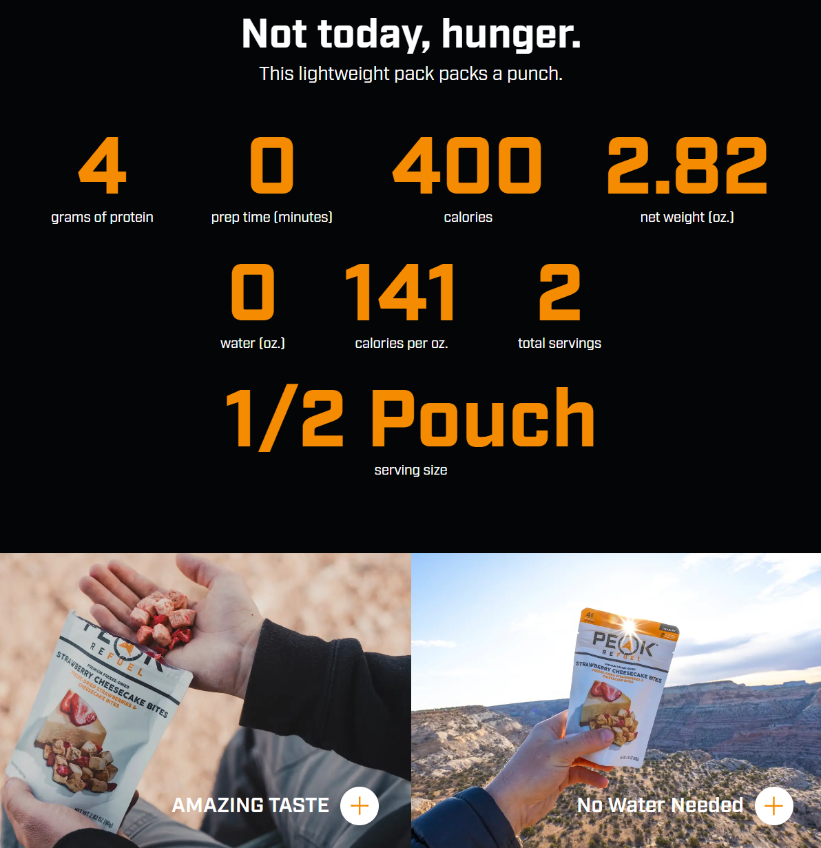 Get ready to take your taste buds on a wild ride with Peak Refuel's Freeze-Dried Strawberry Cheesecake Bites! Perfect for the backcountry, these bite-sized cheesecake treats are packed with freeze-dried strawberries and creamy cheesecake goodness — all in one delicious snack. Whether you're summiting mountains, tackling trails, or just kicking back at camp, these bites are the sweet fuel you need to power through your outdoor adventures. Lightweight, no refrigeration required, and irresistibly tasty — they're like a little slice of heaven, minus the hassle. So, grab your pack and treat yourself to the ultimate backcountry dessert. You’ve earned it!