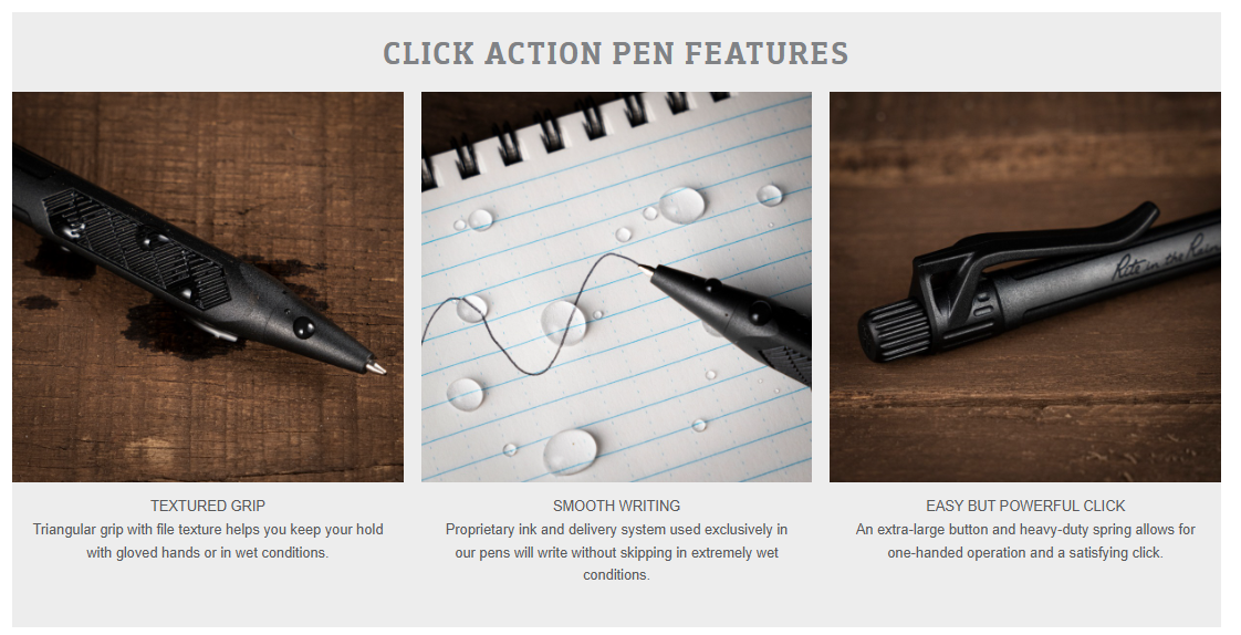 The BK11 : Your new favorite pen! The Click Action pen features Rite in the Rain’s patented waterproof ink, and is built with an excellent grip and solid clicker. A reliable pen for all conditions.