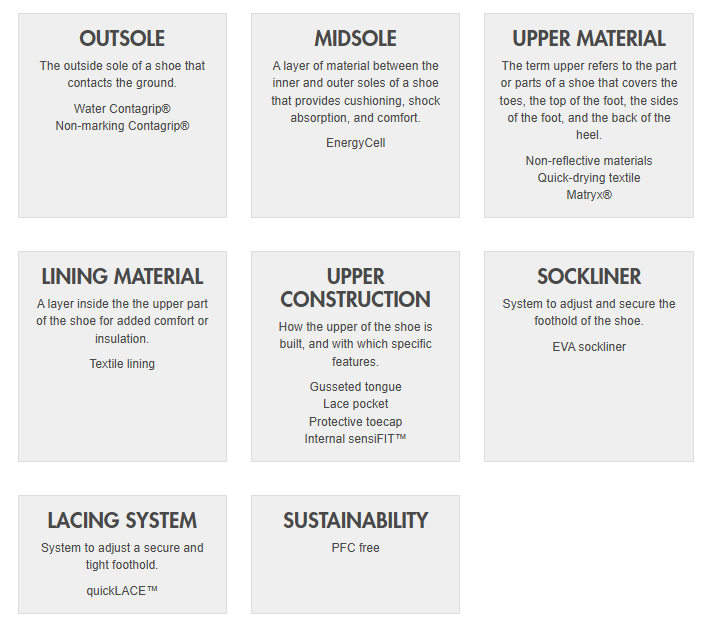 - Key feature Forces : Anti Slip, Lace Pocket, Medial Abrasion Pad, Non Reflective Materials, Protective Toe Cap, US Only: Trade Compliant