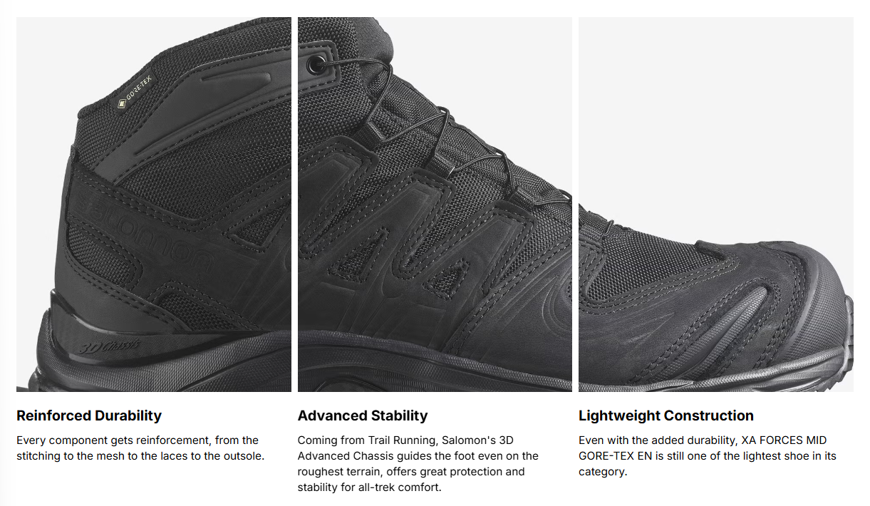 Even with the added durability, XA FORCES MID GORE-TEX EN is still one of the lightest shoe in its category.