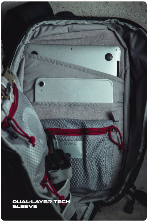 • Dual-layer laptop sleeves protect multiple devices; lower sleeve is loop-lined for Tactigami and other hook-and-loop accessories