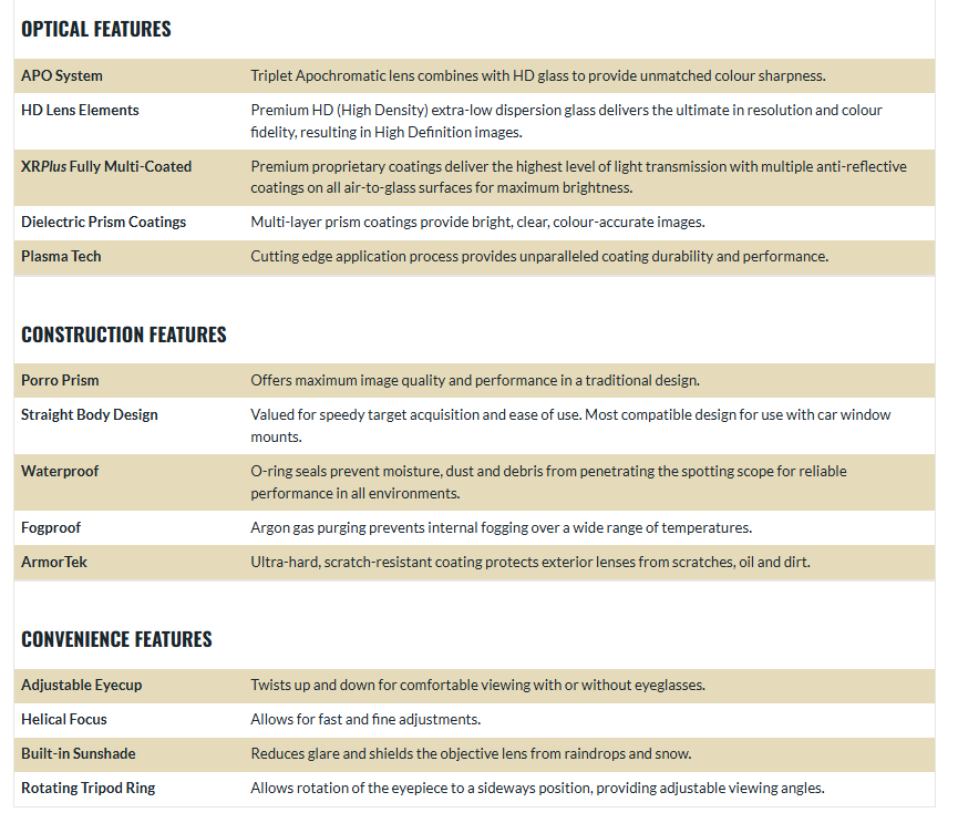 Setting a new standard in high-end optical technologies, precision craftsmanship, and ultra-sleek functionality, the newly engineered Razor HD is one of the finest spotting scopes on the market.